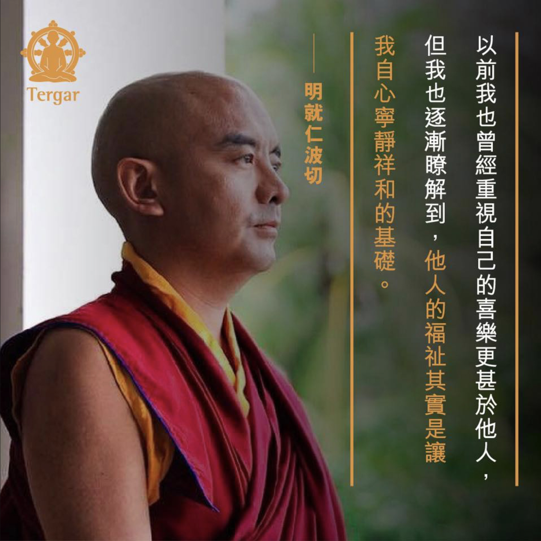 詠給 ‧ 明就仁波切法語一、以前我也曾經重視自己的喜樂更甚於他人,但我也逐漸瞭解到,他人的福祉其實是讓我自心寧靜祥和的基礎。