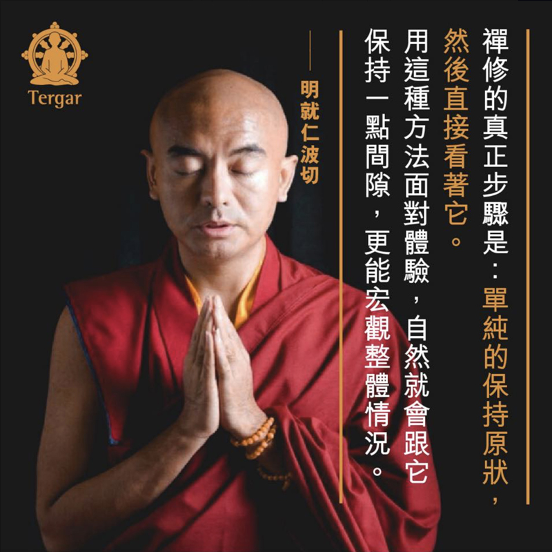 八、禪修的真正步驟是: 單純的保持原狀,然後直接看著它。用這種方法面對體驗,自然就會跟它保持一點間隙,更能宏觀整體惰況。